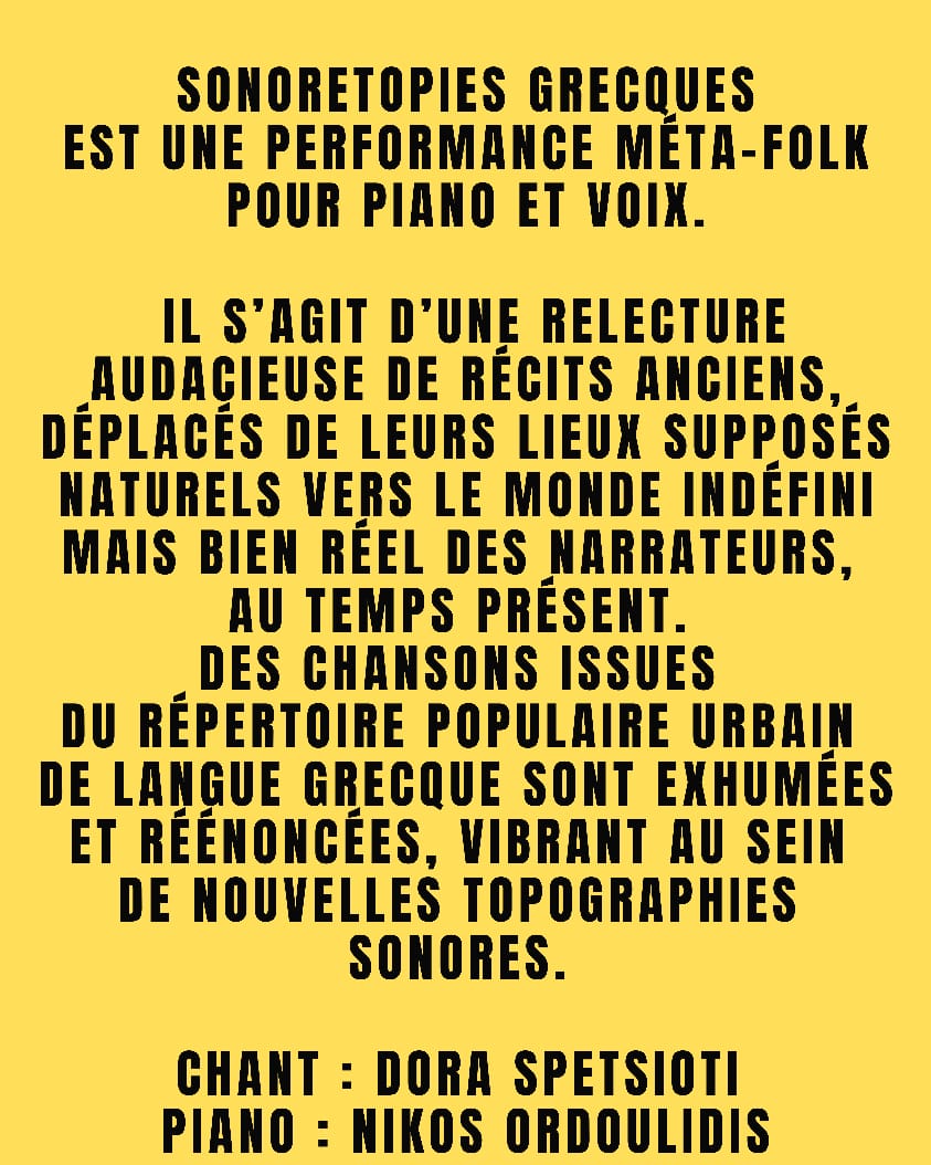 Musiques populaires urbaines de langue grecque du début du 20e siècle, arrangées pour piano et voix.